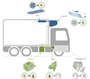 De Vector 1950MT-E van Carrier Transicold heeft geen eigen dieselmotor meer, maar betrekt zijn vermogen via een PTO en generator-set Ecodrive van de motor van de vrachtwagen. Het resultaat is een emissieloze en zeer stille – PIEK gecertificeerde – koelmachine met alle voordelen van het Vector MT-concept. De Ecodrive bestaat uit een hydromotor die wordt aangesloten op een door de truckfabrikant te monteren PTO en een generatorset die vermogen omzet naar 400V/50Hz. Dit vermogen is continu volledig beschikbaar, ongeacht het toerental van de voertuigmotor. Net als de Vector 1950MT gebruikt de Ecodrive beproefde techniek. De Ecodrive is in dit geval gemonteerd op het chassis van een Volvo FH van Nortraffic. De Vector 1950MT-E is geconfigureerd in een multitemp-uitvoering.