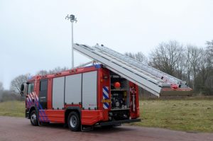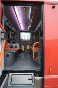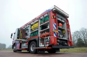 Een ander detail wordt gevormd door de deuren in de manschappencabine. Door die te openen komt er een riante trap tevoorschijn. Hierdoor ontstaat een zeer veilig in- en uitstap, zelfs met ademluchtflessen op de rug. Het mooie is dat de mechanische werkende trap automatisch vergrendeld is als er iemand op staat. Daardoor is veilig in- en uitstappen dus zelfs mogelijk als de deur maar half open kan. Hulleman: ”Wij bieden heel veel specifieke opties die vaak afkomstig zijn uit de praktijk. De besluitvorming over hoe zo’n voertuig er uit ziet wordt altijd samen met het korps gedaan, tot in het kleinste detail. Zo was één van de eisen een Allison volautomatische versnellingsbak, en die zit er dan ook in.’’