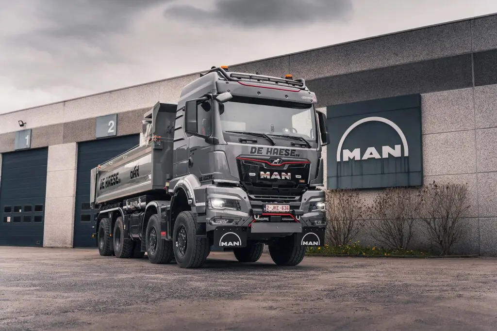 De opbouw van deze MAN is allesbehalve standaard. Wierda heeft het voertuig in Nederland voorzien van Wide Spread, wat zorgt voor een bijzonder korte draaicirkel en extra wendbaarheid in veeleisende werkomgevingen. De verdere opbouw is verzorgd door Alumac en omvat onder meer een 30-tons containersysteem van Hiab. Verder is de TGS voorzien van een Hardox container met automatisch afdekzeil + hydraulische achterdeur en hydraulisch geveerde achterassen met automatische vlakstelling. Daarmee is een truck gerealiseerd die volledig aansluit op de specialistische werkzaamheden van De Haese.