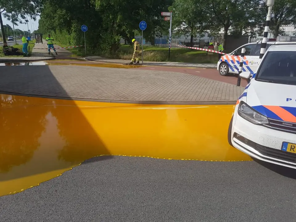 Een bijzondere situatie maandagmorgen op de kruising van de Compagnie met de Oostergouw in Hoorn. Daar kantelde een vrachtwagen met 15.000 liter eigeel. En bij deze hitte slaat de fantasie dan al gauw op hol…
