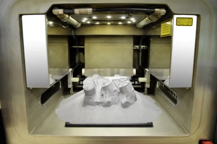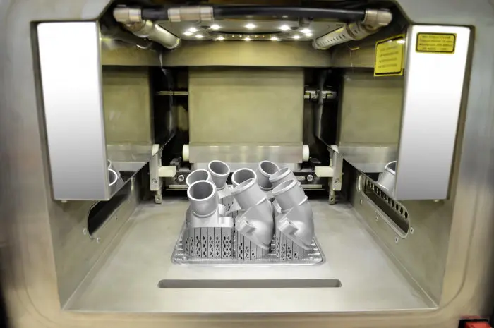 In tegenstelling tot de selectieve lasersinterferentie (SLS) die in de plasticsector wordt gebruikt, gebruikt 3D-afdrukken van metallische componenten Selective Laser Smelting (SLM). In het geval van de thermostaatdeksel wordt bijvoorbeeld het poeder aluminium / siliciummateriaal (ALSi10Mg) in afzonderlijke lagen aangebracht en gesmolten door een energiebron – meestal een of meer lasers. Wanneer een laag is voltooid, wordt een nieuwe laag poeder automatisch aangebracht en het smeltproces wordt herhaald. Het proces wordt herhaald tot er een hoge sterkte, driedimensionale aluminiumcomponent die geschikt is voor gebruik met hoge temperatuur, is geproduceerd. Dankzij de gelaagde structuur biedt het proces ook een niveau van geometrische vrijheid die niet kan worden aangepast aan een andere productiemethode.