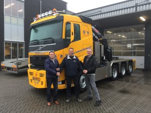 Dat het Volvo moest worden, werd al vrij snel duidelijk. Manager Special Projects Arvid de Groot legt het uit. “Na offertes bij verschillende merken neer te hebben gelegd, kwam Volvo als beste uit de bus. Van Dijk Woerden zit bovendien bij ons om de hoek en we hadden al voertuigen in onderhoud bij deze garage. Dat bevalt heel goed. Natuurlijk ging het ook om de offerte waar we heel tevreden over waren, maar de goede contacten die we met Van Dijk Woerden hebben en de prima service die ze daar bieden gaven de doorslag.” Samen met vertegenwoordiger Roel Hoogendoorn en carrosseriebouwer HSM Utrecht BV werden een nieuwe Volvo FMX 8×4 Tridem met kraan en haakarmsysteem en een Volvo FH 8×4 trekker met een 85 ton/meter kraan samengesteld.