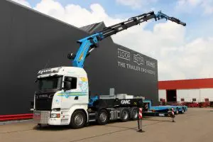 Directeur Peer Vogel van GAAC Commerz GmbH in het Duitse Mittenwalde – enige kilometers onder Berlijn – kiest voor de zware toepassingen bewust voor trailers van Pacton. Directeur Peer Vogel: “De nieuwe Pacton semi-dieplader wordt ingezet in combinatie met een nieuwe Scania-truck, met een Palfinger PK92000 kraan; de zwaarste in ons wagenpark.”