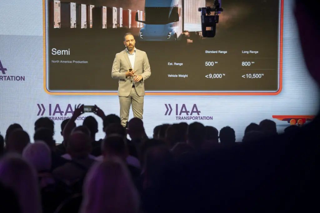 In een keynote speech op IAA Transportation ging Dan Priestley in op de ervaringen met de Semi in Amerika. “PepsiCo heeft vorig jaar een demonstratie uitgevoerd waarbij meer dan 1.700 kilometer werd afgelegd in slechts 24 uur, mede dankzij de inzet van megawatt laders. De operationele kosten van de Semi’s die we momenteel inzetten, zijn lager dan die van traditionele trucks. Momenteel zien we dat vrachtwagens rond de 100 kilowattuur per 100 kilometer verbruiken. Dit getal zal met de komst van de high-volume versie van de Semi nog verder verbeteren. Efficiëntie is de sleutel, omdat dit leidt tot een lagere batterijmassa, lagere kosten en uiteindelijk betere economische prestaties voor de klant.”