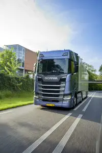 Op het meer heuvelachtige gedeelte van onze route zien we Pulse & Glide bijna niet meer terug, maar kunnen we wel merken hoe fijn de Scania Opticruise met de layshaft brake schakelt. Nooit laat de transmissie ook maar één steekje vallen. Ook niet op onze toch niet misselijke klim van maar liefst 3,3 km, die de S500 in 5 min 22 afrondt en waaraan hij 5,61 liter diesel spendeert. Ondertussen is het in de cabine aangenaam comfortabel. Deels wordt dat veroorzaakt door de rondom met luchtvering uitgevoerde S. Het is een warme dag als we rijden en de geventileerde stoel van de chauffeur is vrij letterlijk een verademing. Active Prediction is behalve efficiënt voor het brandstofverbruik ook comfortabel voor de chauffeur. Dat blijkt wel als we later op de middag terechtkomen in een van de vermaledijde files op de A3. Testchauffeur Johan kan met de adaptive cruise control de voorganger ook in de file volgen met de voet van het gaspedaal. De truck rijdt rustig achter zijn voorganger aan en de adaptive cruise control blijft ingeschakeld bij snelheden boven de 10 km/h.
