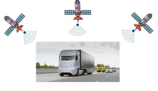 GNSS Op basis van het satellietsignaal dat wordt opgevangen door de DTCO in het voertuig wordt de positie van het voertuig bepaald. Daarbij is een stabiele ontvangst van minimaal 3 satellieten benodigd.
