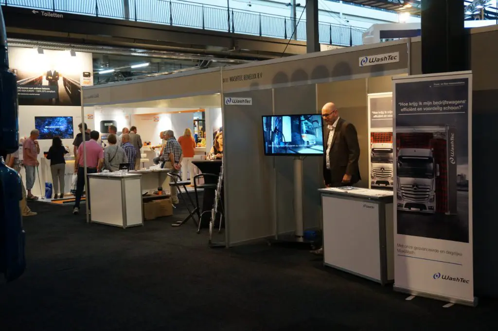 ACT doet nog het meest zijn best met een grote draaiende roze-zwarte borstel, maar verder heeft het merk net als Christ en WashTec een bescheiden stand. Jesse Streng van ACT: “ACT levert al meer dan 20 jaar alles op het gebied van bedrijfsvoertuigreiniging en is de importeur van de Duitse Steinbrückner wasinstallaties in Nederland. De installaties zijn vaak duidelijk herkenbaar door de roze zwarte borstelsegmenten. Vanuit onze locatie in Belfeld bedienen wij Nederland 24 uur per dag en 7 dagen per week. Het bedrijf heeft korte lijnen en een hoge service graad. Met gepaste trots kunnen wij nu zeggen dat er meer dan 250 Steinbrückner portaalwasinstallaties werkzaam zijn in de Nederlandse markt.” Een portaalwasinstallatie kan volgens ACT binnen 24 uur bij een transportbedrijf worden geïnstalleerd.
