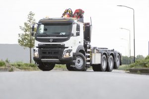 Met een 10-tons vooras, 33-tons tridemstel met gestuurde 10-tons naloopas is de bouwtruck multifunctioneel inzetbaar voor aan- en afvoer van grond, zand, steen en groenafval. De Volvo FMX is de vierde kraanwagen in het wagenpark van het bedrijf, en de eerste Volvo. Pieter Vroom, eigenaar: “We waren met name onder de indruk van het sterke chassis van de Volvo FMX. Op advies van Volvo Group Truck Center hebben we gekozen voor kruipversnellingen, ook achteruit. Zeker in combinatie met Volvo Dynamic Steering kan de chauffeur hiermee met zware vrachten heel precies manoeuvreren.”