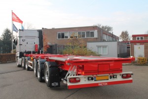 Het chassis is uitgerust met 3 stuks 9-tons SAF assen met schijfremmen een aslift op de voorste en achterste as, zo kan de bandenslijtage worden beperkt. Ook kan er middels het liften van de assen de koppelingsdruk worden verbeterd, wanneer er wordt gereden met zware containers op de achterste posities.