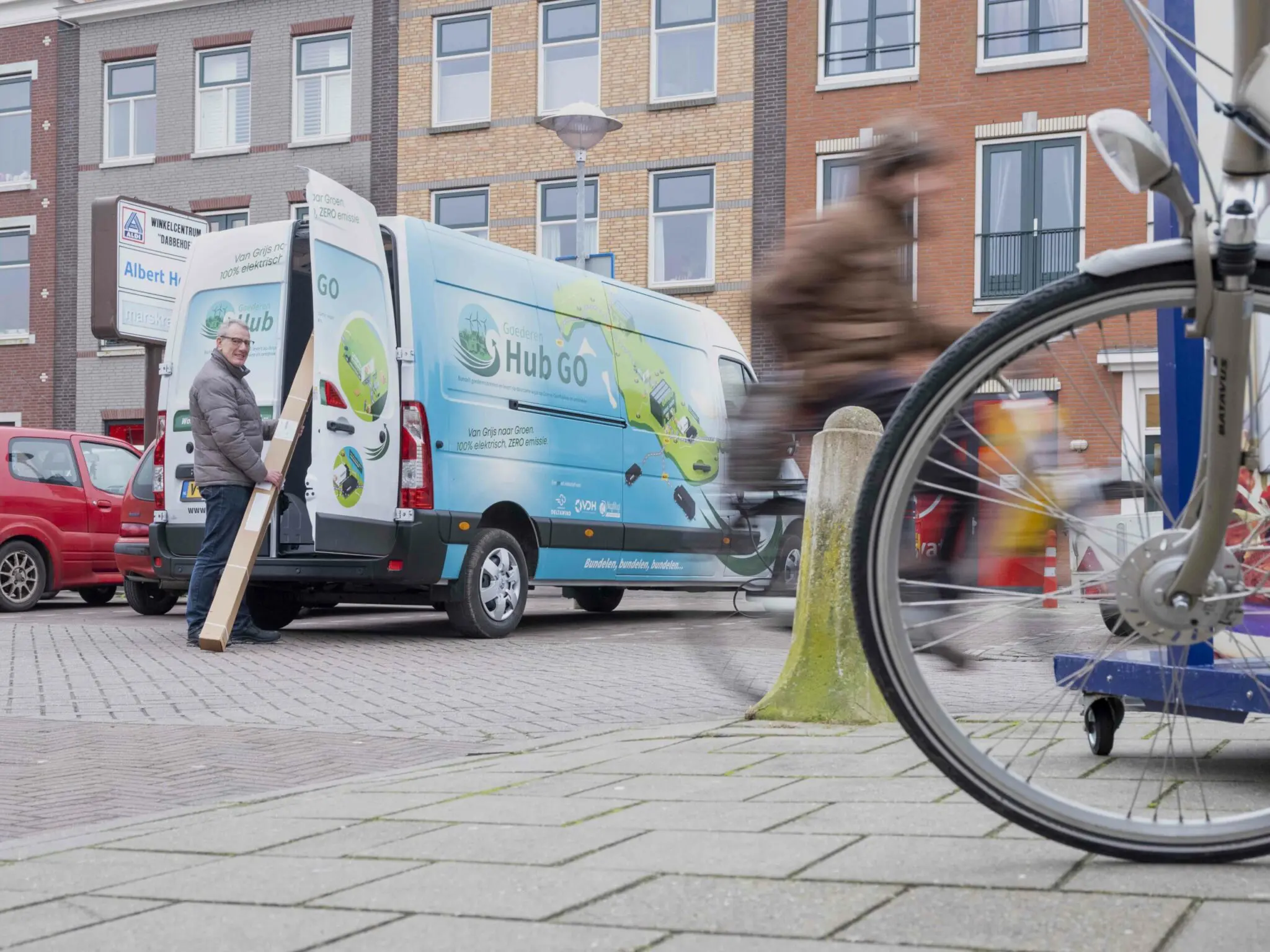 Goederenhub GO is in januari van start gegaan. De initiatiefnemers wilden in verband met het doel van het initiatief een duurzaam, zero emissie voertuig inzetten voor de distributie. Bij de oriëntatie was het laadvolume een belangrijke eis, vertelt Nagtegaal. “Het voertuig moet hetzelfde laadvermogen hebben als een bedrijfswagen op fossiele brandstof. Om die reden viel de keus al snel op de Renault Master Z.E. Het laadvolume van dit voertuig is gelijk aan dat van de standaard bestelbus. Daarnaast is de lokale aanwezigheid van dealer Bluekens Truck en Bus in Middelharnis voor ons belangrijk met het oog op de service, waar we de komende drie jaar dankzij een reparatie- en onderhoudscontract geen omkijken naar hebben.”