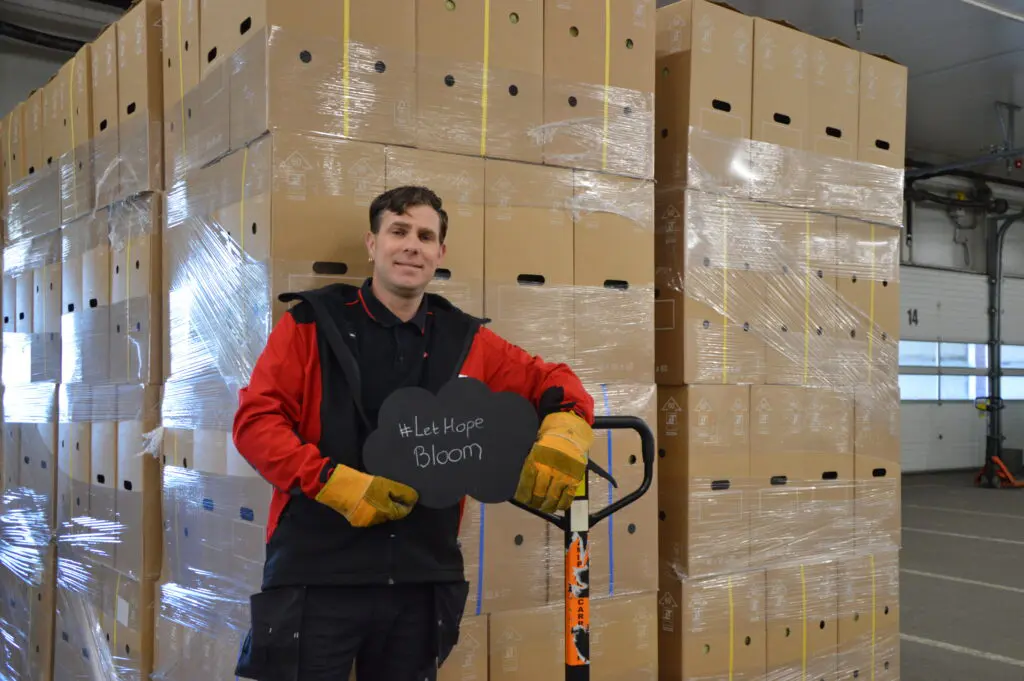 Foto’s + VIDEO: Transporteurs maken thuiszorg en verzorgingstehuizen blij met 150.000 boeketten #LetHopeBloom