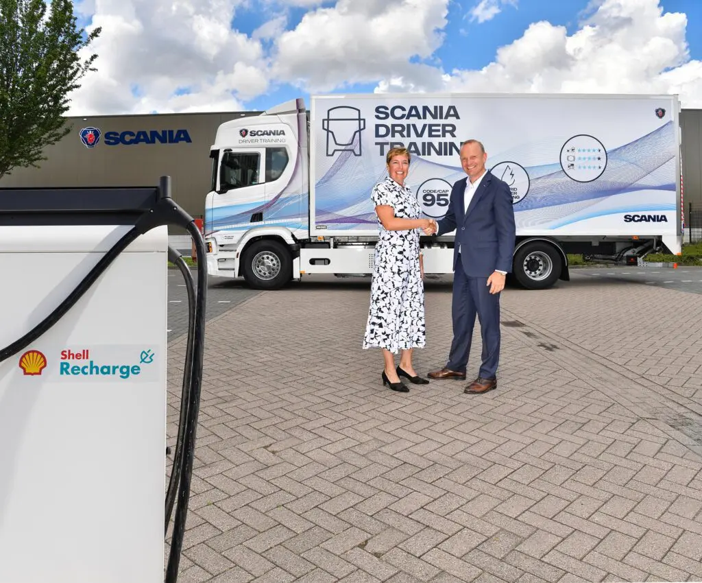 Scania en Shell Commercial Road Transport delen de ambitie om de zware transportsector te decarboniseren. Ze bundelen hun krachten om openbare snellaadstations met Shell Recharge-laders te bouwen op het Scania dealernetwerk in Nederland, met de potentie om uit te breiden naar de hele Benelux. Deze strategische stap toont de intentie van beide bedrijven om te investeren in oplaadinfrastructuur voor elektrische vrachtwagens en bussen als onderdeel van hun toewijding om de zware transportsector te decarboniseren.