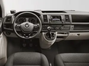 Het interieur van de T6 lijkt ook op het vorige, maar nieuw zijn opbergplekken onder het stuur en boven het dashboardkastje. Op het dashboard vinden we een nieuw A4-documentenvak en twee bekerhouders. Ook nieuw is het multimedia- en navigatiesysteem. Interessanter aan de T6 zijn de onderhuidse veranderingen. Zo zijn er tal van veiligheidssystemen (automatic post-collision braking system, city emergency braking, achteruitrijcamera) en features die de chauffeur helpen (driver alert systeem, adaptive cruise control en dynamic chassis control). VW levert nieuwe motoren voor de T6. Er is een EA888 benzinemotor met 110 en 150 kW en één EA288 2.0 TDI diesel in vier varianten, allemaal al klaar voor Euro 6. De vier vermogensvarianten zijn 62, 75, 110 en 150 kW, waarbij de laatste twee ook leverbaar zijn met de DSG-bak. Alle Euro 6 dieselmotoren hebben een start-stop systeem. Volkswagen belooft meer koppel, snellere acceleratie en een fors lager brandstofverbruik voor alle motoren. Er komt geen gasmotor voor de T6, vanwege gebrek aan een benzinemotor met voldoende vermogen.