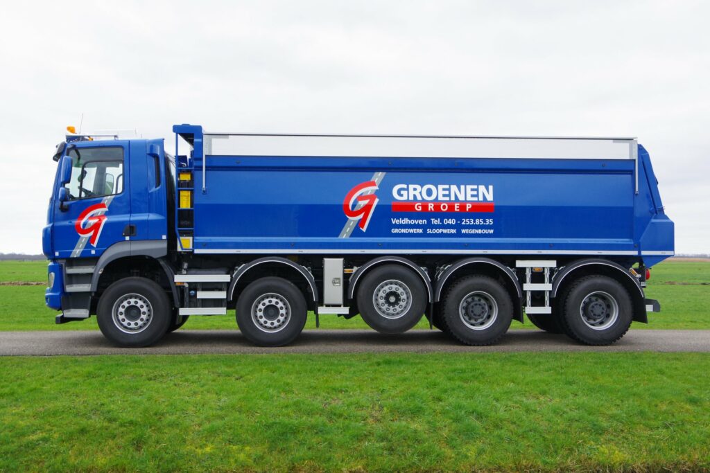 De Groenen Groep was op zoek naar een kipper en wendde zich tot Veldhuizen, dat meer dan 20 zandkippers op voorraad had staan. Groenen koos voor de DAF CF FAD 530, compleet met TraXon versnellingsbak met direct drive, een widespread tandemstel, een Hyva geïsoleerde kopper met asfaltsnip. Speciaal voor Groenen werd de auto voorzien van een overdrukinstallatie en natuurlijk werd de CF gespoten in de bedrijfskleuren van Groenen. Het laadvermogen van de CF FAD 530 bedraagt 31 ton.