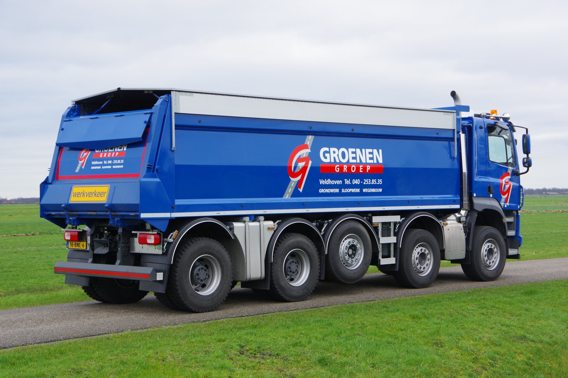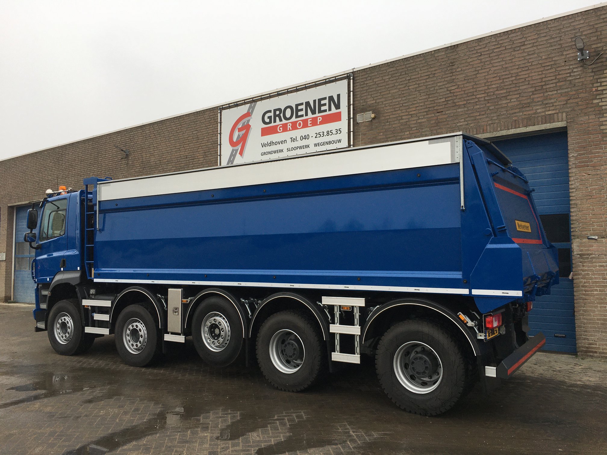 De Groenen Groep was op zoek naar een kipper en wendde zich tot Veldhuizen, dat meer dan 20 zandkippers op voorraad had staan. Groenen koos voor de DAF CF FAD 530, compleet met TraXon versnellingsbak met direct drive, een widespread tandemstel, een Hyva geïsoleerde kopper met asfaltsnip. Speciaal voor Groenen werd de auto voorzien van een overdrukinstallatie en natuurlijk werd de CF gespoten in de bedrijfskleuren van Groenen. Het laadvermogen van de CF FAD 530 bedraagt 31 ton.
