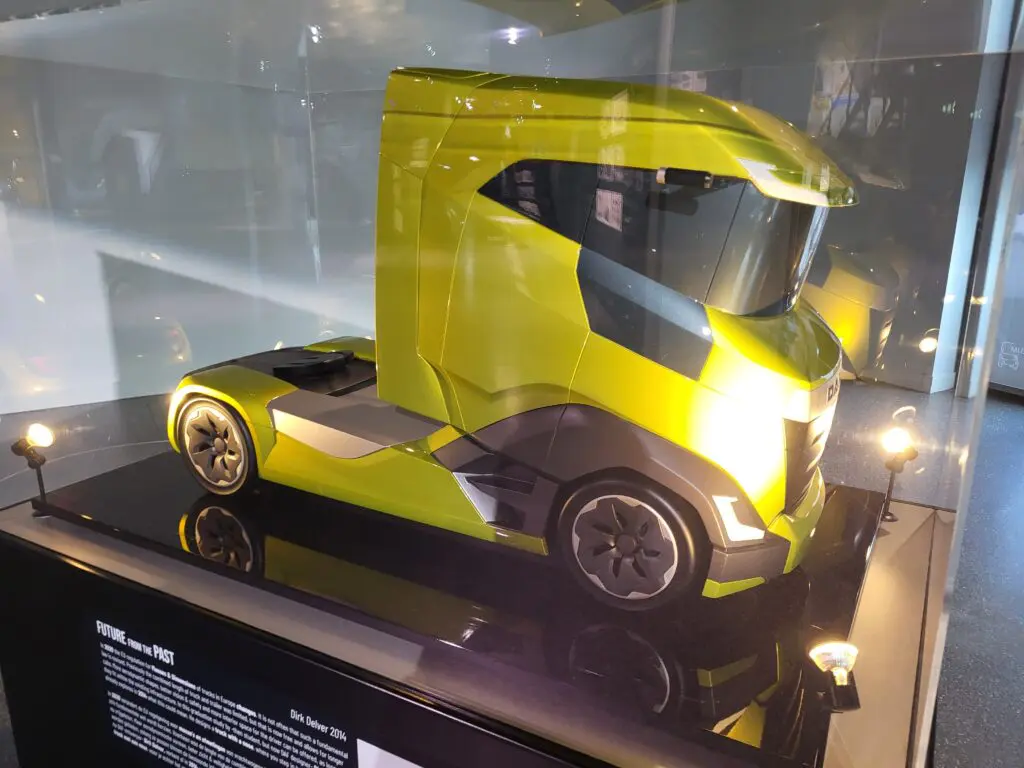 De tentoonstelling gaat in op het ontstaan van het DAF Design Center en het werk van ontwerpers John de Vries, Bertrand Janssen en Bart van Lotringen. Het is fraai om te zien hoe de ‘premium family look’ door de decennia doorontwikkeld en toch behouden werd. Interessant is ook, een kleine zijstap, de ontwikkeling van The Bull, de DAF Dakar truck voor 1985. Dat gebeurde door Chris Milburn, die destijds stage liep bij DAF Trucks. DAF heeft altijd kansen gegeven aan jonge ontwerpers. Een fraai voorbeeld daarvan is Dirk Delver, die in 2014 een toekomststudie voor DAF mocht maken en tegenwoordig als ontwerper bij het merk werkt. De conceptmodellen op schaal zijn fraai om te zien.