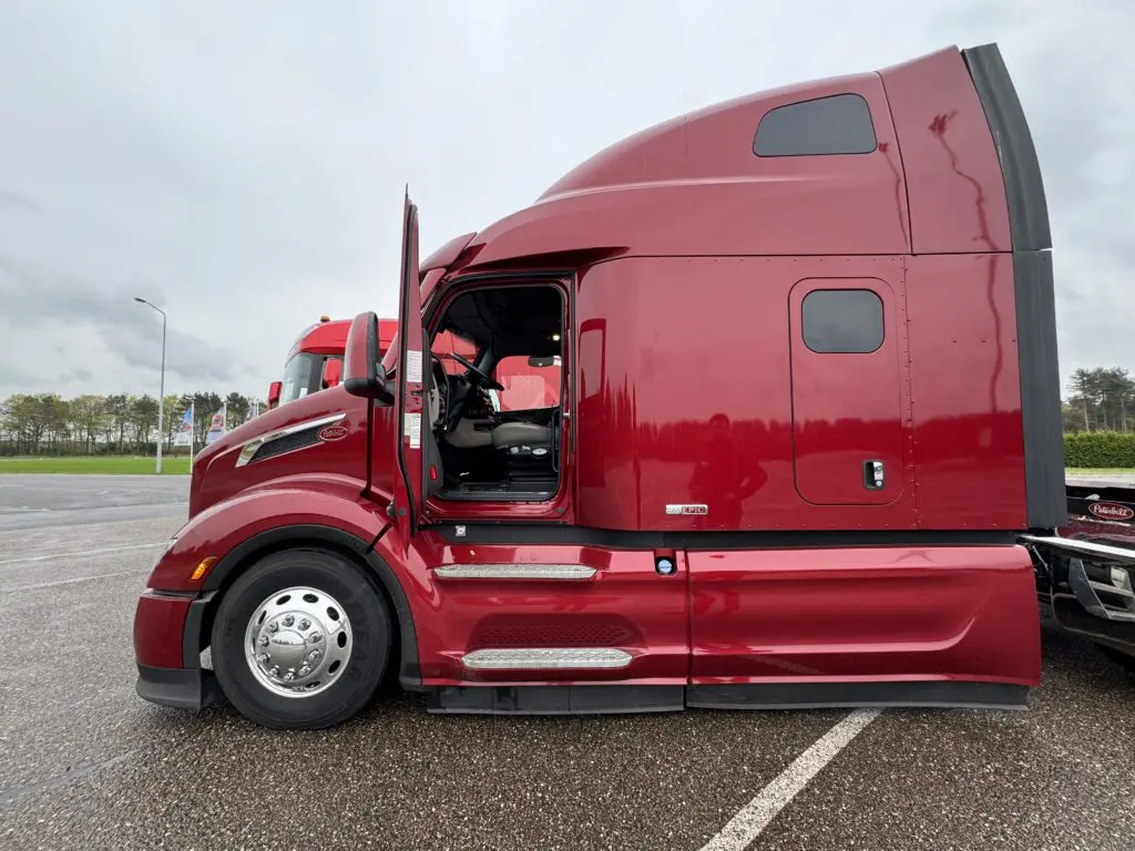 De Peterbilt daarentegen is de ultieme lange-afstandscruiser. Zelfverzekerd, stabiel, maar wat log in de stad – veel meer thuis op brede highways dan in drukke binnensteden. Ongbeladen kan de vering wat stug aanvoelen, maar eenmaal op de Interstate glijdt hij als een rijdende lounge over het asfalt. Het EPIQ-aeropakket doet bovendien zijn werk: minder luchtweerstand en tot wel 10 procent lager brandstofverbruik.
