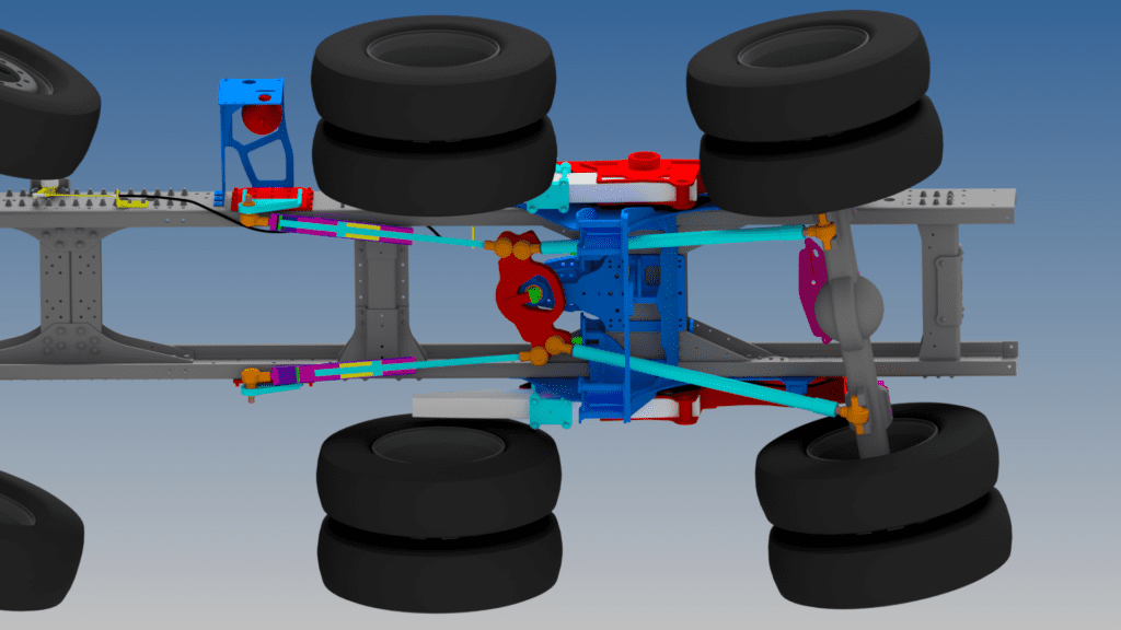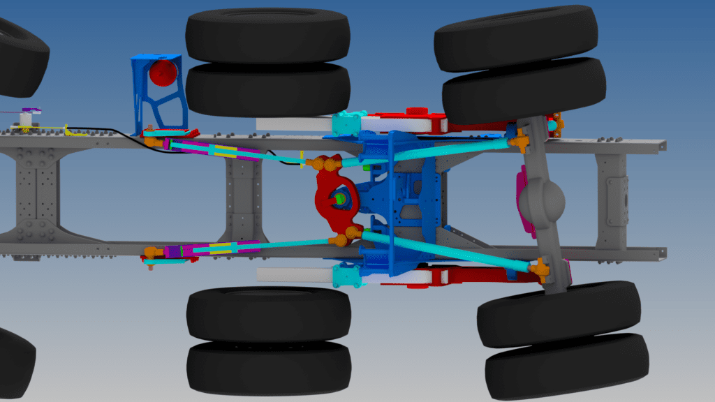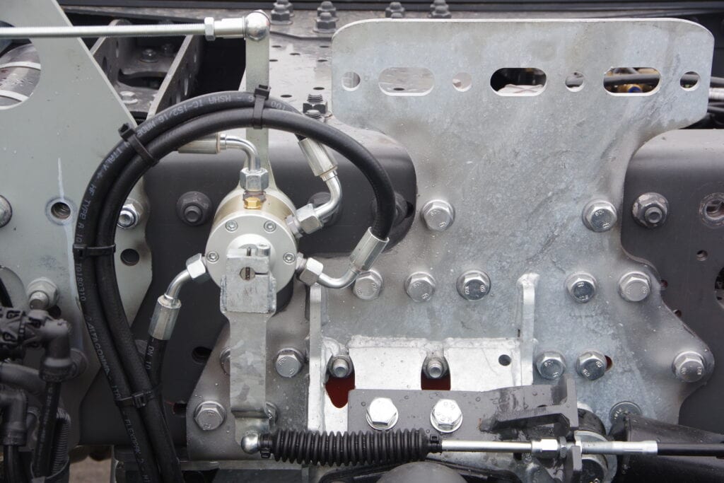 Bij haakarmauto’s die een lange oversteek en weinig gewicht op de voorassen hebben, is het wenselijk dat de as niet stuurt bij hoge snelheid. Om een betrouwbaar systeem te krijgen wat ook nog zelf te repareren is, heeft Veldhuizen de Hydro-WSG ontwikkeld.