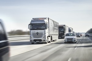 Op de snelweg bleek Highway Pilot Connect al veel verder te zien dan simpel ‘treintje rijden’. Niet alleen wordt met GPS en wifi een verbinding opgezet tussen de trucks, de voertuigen houden ook rekening met ander verkeer. Een veelgehoorde klacht, ook op TTM.nl, is dat met ‘treintjes vrachtwagens op de weg’ het wel heel moeilijk wordt om in te voegen voor andere voertuigen. De demonstratie van Mercedes liet zien dat als er een voertuig zich tussen de minimaal op 15 meter van elkaar rijdende trucks perst, het achterste voertuig meteen meer afstand neemt. Afstand nemen in het platoon onderling gebeurt ook bij op- en afritten. Zelfs een noodstop kan met drie trucks achter elkaar in goede orde worden afgewerkt, zo blijkt.