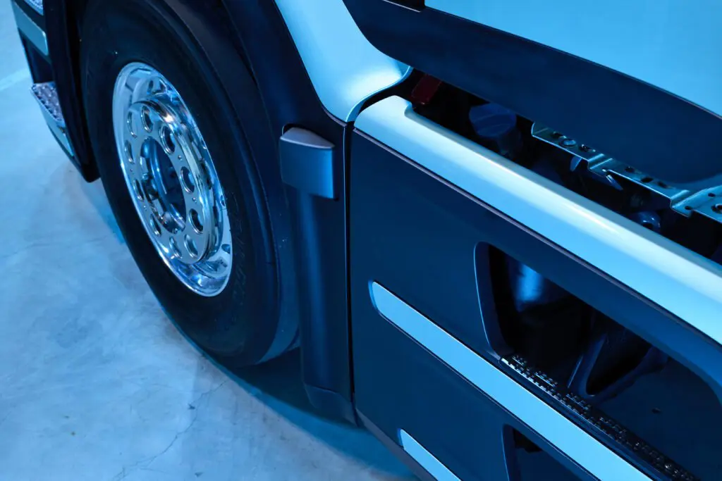 De diverse spionagefoto’s van de nieuwe Actros L lieten al zien dat ook de versie met verbrandingsmotor vernieuwd zou worden. Het is geen verrassing dat de cabine er hetzelfde uitziet als bij de eActros 600. Ook hier is een volledig gesloten en afgerond front, een geoptimaliseerde bumper, inclusief panelen onder de carrosserie, een aerodynamisch verbeterde instap voor de chauffeur en verlengde zijdeflectoren die zijn vormgegeven als zeilen. Luchtdeflectoren op de A-stijlen, een extra spoiler op het dak en een afgedicht motorcompartiment vullen de aerodynamische verbeteringen aan de cabine aan. We zien ook lichte verschillen. De Actros L heeft een iets grotere opening in de grille, onderaan bij de bumper, voor wat meer koelingsmogelijkheden. Op het model wat wij zagen is de LED-verlichting iets minder uitbundig dan bij het elektrische model. Wel is er optioneel matrix LED licht beschikbaar. De aerodynamische vormen van de Actros L moeten drie procent brandstofbesparing opleveren. Gebleven zijn de trottoir- en frontzichtspiegel, naast Mirrorcam, al zijn de spiegels iets meer aerodynamisch gevormd. Voor nog meer aerodynamica zagen we wieldoppen op de Actros L, maar we vragen ons af op vervoerders die wel willen op hun vrachtauto’s. Het ligt overigens in de lijn der verwachting dat het cabineontwerp van de Actros L op termijn ook zal worden toegepast op andere varianten van de Actros-cabine, maar daar wilde Mercedes-Benz niet op vooruit lopen.