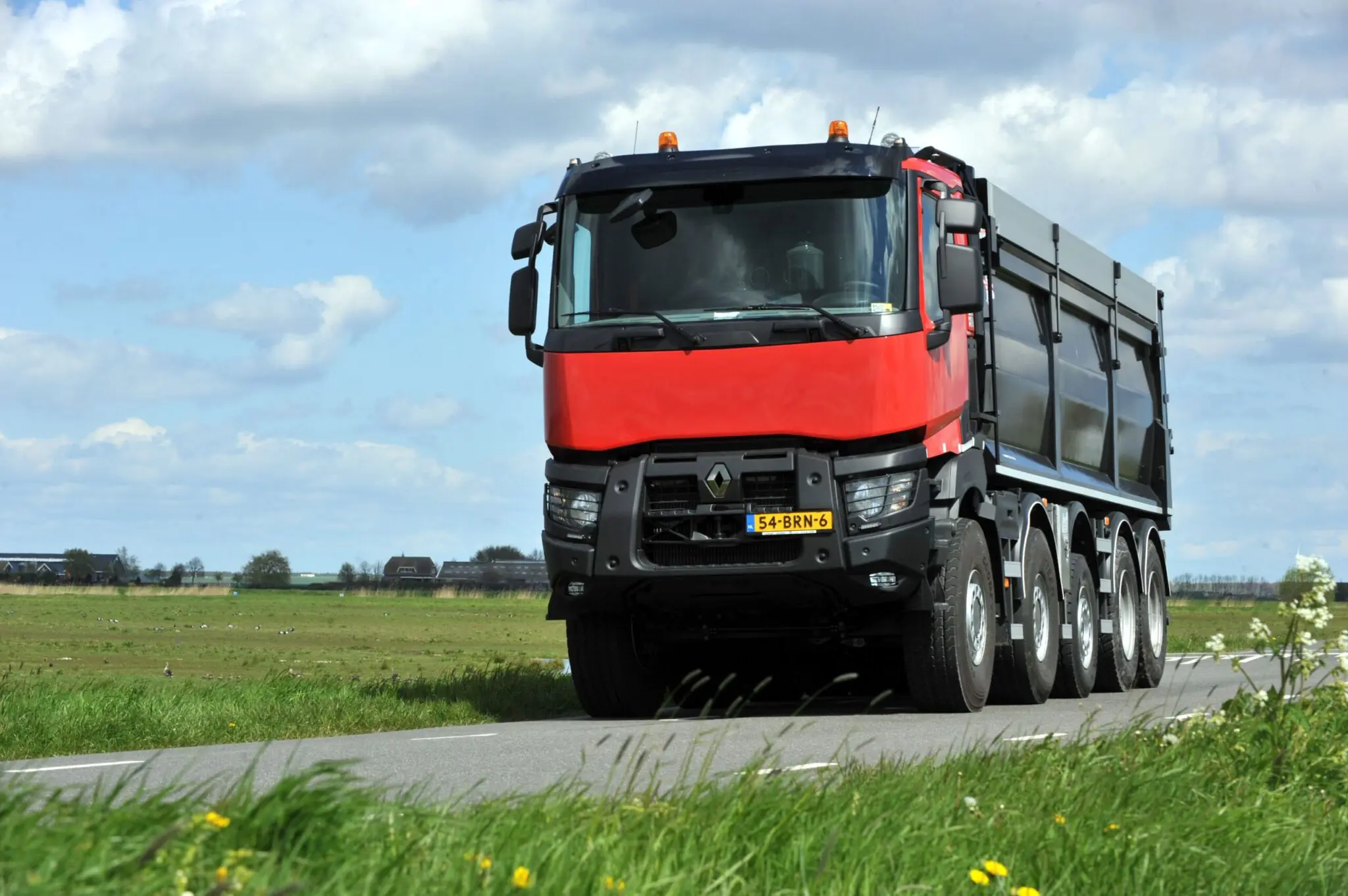 Veldhuizen Groenekan presenteert een nieuwe speler in het zwaarste segment van het bouwvervoer, namelijk de Renault Trucks K 10×8 kipper. Renault Trucks heeft een reputatie hoog te houden in het bouwsegment maar door de afwijkende Nederlandse wetgeving voldoen de af- fabriek leverbare voertuigen vaak niet aan de specifieke wensen van de klant. Veldhuizen Groenekan nam een Renault Trucks K 8×8 onder handen en dat resulteerde in een 10×8 met 50 ton GVW op kenteken.