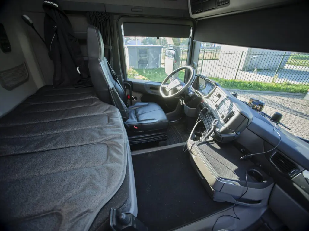 Onze testauto heeft een R-cabine en met tredes op 37, 76 en 114 cm komen we op de cabinevloer die op 146 cm hoogte ligt. Het interieur komt ons bekend voor maar dat is helemaal niet erg want de cabine, of dat nou R of een S is, voldoet prima en biedt ook voor deze truck meer dan voldoende ruimte. Wel opvallend: deze testauto heeft nog niet het nieuwe ‘Smart Dash’. We horen dat dat enkel aan deze demo ligt, die al weer een tijdje meegaat. Bestel je nu een nieuwe Scania BEV met R- of S-cabine, dan zit dat Smart Dash er gewoon op.