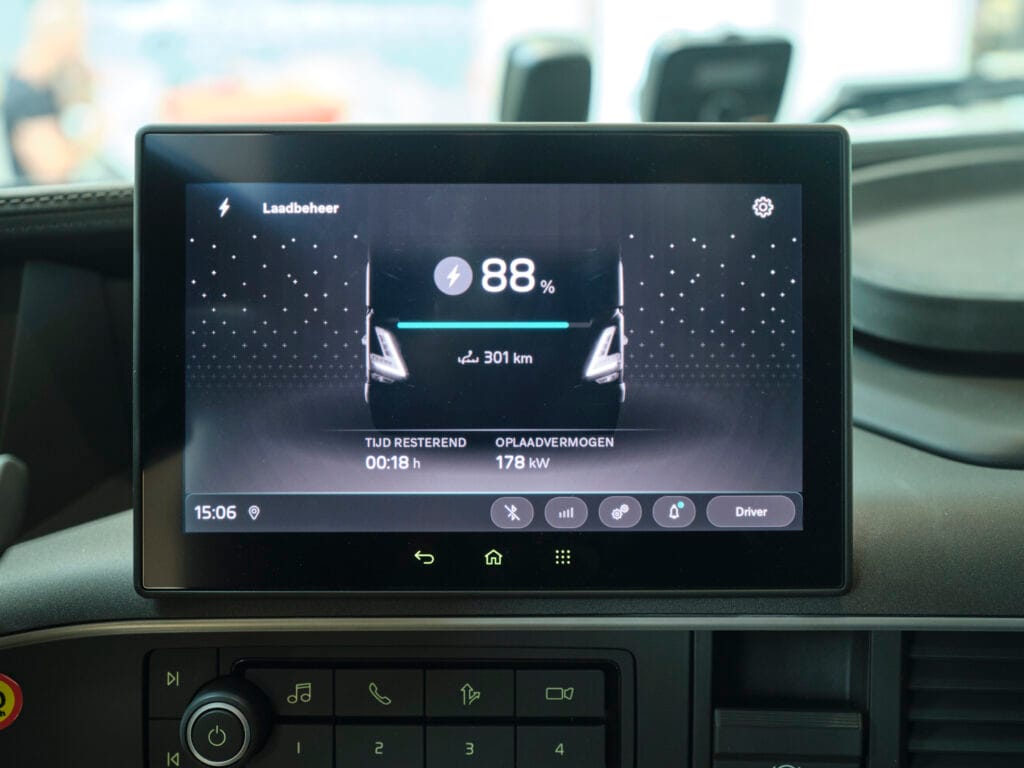 Er is nu geen tijd om te gaan discussiëren of een FH Electric met 350 km actieradius wel een truck is voor internationaal vervoer. We moeten deze test praktisch houden, en dus kiezen we voor onze binnenlandse testroute. Die halen we makkelijk met deze actieradius; onze internationale testroute (530 km) is te riskant, zeker met de beperkte laadinfrastructuur in Duitsland. Vanaf ElaadNL laten we Sean Bos de FH sturen richting Ede en Barneveld.