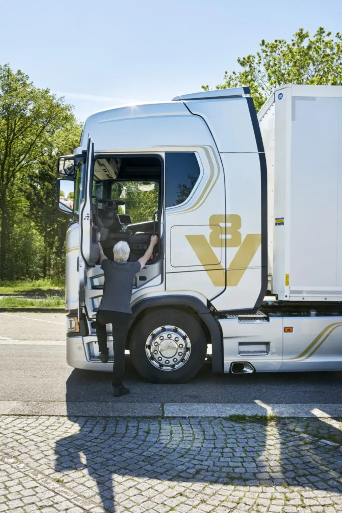 V8. Het zijn maar twee tekentjes maar het betekent een hele wereld voor veel transporteurs en vooral chauffeurs. Er zijn echt vrachtwagenchauffeurs die bij het horen van ‘V8’, of het nu de naam is dan wel de roffel uit de uitlaat, een glazige blik in de ogen krijgen en geen woord meer kunnen uitbrengen. Gelukkig is dat bij hun werkgevers vaak anders. Die denken over het algemeen wat zakelijker en weten dat zo’n ‘dikke motor’ weliswaar heel fijn is, maar ook duurder in dagelijks gebruik. Dus koop je ‘m alleen als je ‘m echt nodig hebt of je chauffeurs wilt pleasen. En toch… is de V8-motor zo geliefd dat-ie al 50 jaar meedraait in het Scania-gamma.