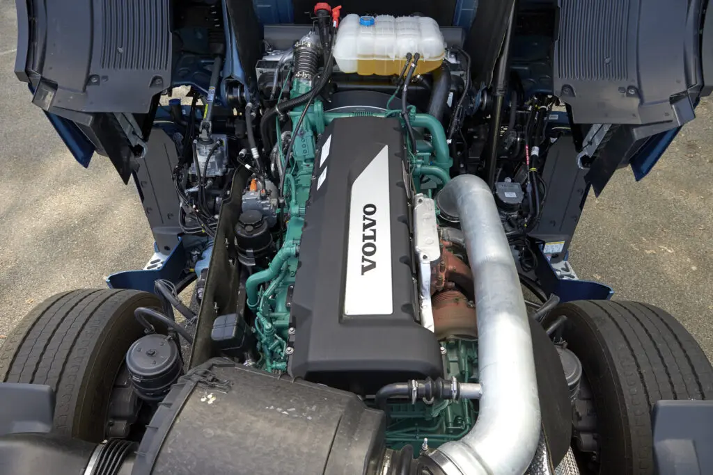 De volgende FH die we rijden op de Zuid-Zweedse wegen heeft ook al een 500 pk motor, maar dan wel de D13TC. Dat betekent dat we in totaal 2800 Nm hebben, 300 Nm meer dus dan bij de D13K. Dat koppel is er al vanaf 900 toeren per minuut. Bij het wegrijden, en ook bij versnellen en heuvels onderweg, laat de motor zich aangenaam horen. Er zit een lichte grom in het motorgeluid en dat bewijst aan de chauffeur eigenlijk dat je met meer vermogen onderweg bent. Wij vonden het een prettige bevestiging dat we met de D13TC onderweg waren. De FH die we rijden heeft luchtvering rondom en daarom is het mogelijk het chassis (automatisch) lager af te stellen vanaf snelheden boven de 60 km/h. Scheelt weer luchtweerstand en dus brandstof.