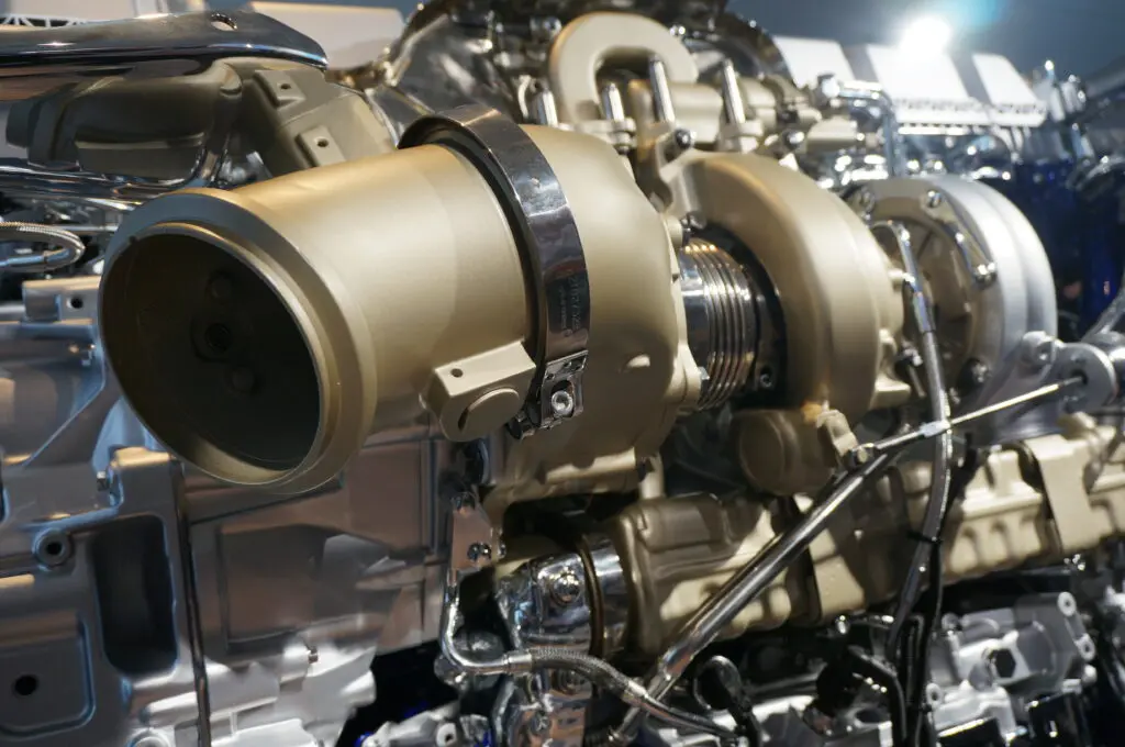 I-Save is een combinatie van motortechniek en een set brandstof besparende functies. Eerst maar eens kijken naar de nieuwe D13TC motor. Dat is in principe dezelfde motor als de 12,8 liter D13K, maar met turbocompound en nog meer aanpassingen. Tijdens de presentatie heeft Volvo van allebei de motoren een model neergezet en zelfs een leek kan het zien: aan die D13TC zit extra ‘stellage’ en dat is dus de turbocompound. Jaren geleden liet Volvo al weten te werken aan een motor met turbocompound onder de naam I-Torque. Die belofte werd nooit ingelost, tot nu toe. I-Save is wat betreft motorentechniek alles wat I-Torque al inhield.