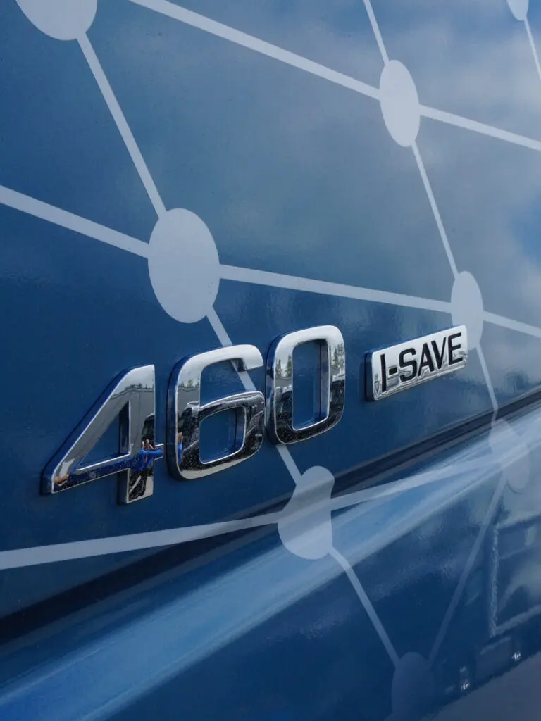 Maar hoe werkt het? De D13TC-motor heeft zuigers met een gepatenteerd, gegolfd binnenwerk die de verbranding verbeteren en de efficiency verhogen door warmte en energie naar het midden van de cilinders te leiden. Overtollige energie in de uitlaatgassen verdween eerder naar de uitlaat wordt vervolgens gebruikt om de motor aan te drijven via de Turbo Compound-unit. Dit is een duidelijk zichtbare extra turbine die in de uitlaatgasstroom is geplaatst. De extra energie levert 300 Nm extra koppel en alles bij elkaar zorgt het voor 4 procent minder brandstofverbruik. De D13TC is er met 460 en 500 pk en kan  we gaan er zo mee rijden, maar eerst kijken we naar de andere features van I-Save.