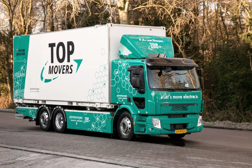 P.A. van Rooyen Top Movers heeft zijn eerste Volvo FE Electric containerwagens in gebruik genomen. De verhuisspecialist uit Uithoorn gaat met deze trucks verschillende soorten afzetcontainers vervoeren. De trucks zijn geleverd door Volvo Trucks-dealer Volvo Group Truck Center Aalsmeer.